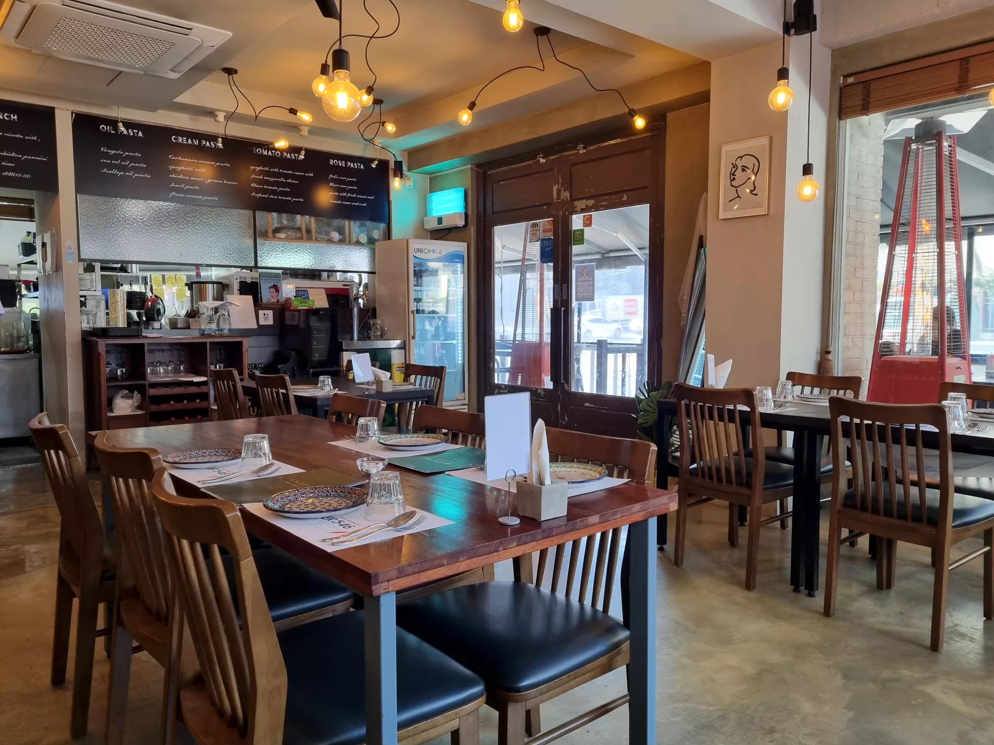 내부는 아주 넓지도, 작지도 않은 사이즈입니다. 아늑한 느낌이 좋네요. 야외 테라스에도 좌석이 있는데 겨울에는 난로를 켜둬서 별로 춥지가 않습니다. 실내는 예약손님이 우선인데 야외테라스는 예약을 받지 않아서 바로 방문시에는 테라스에서 식사도 가능합니다.
