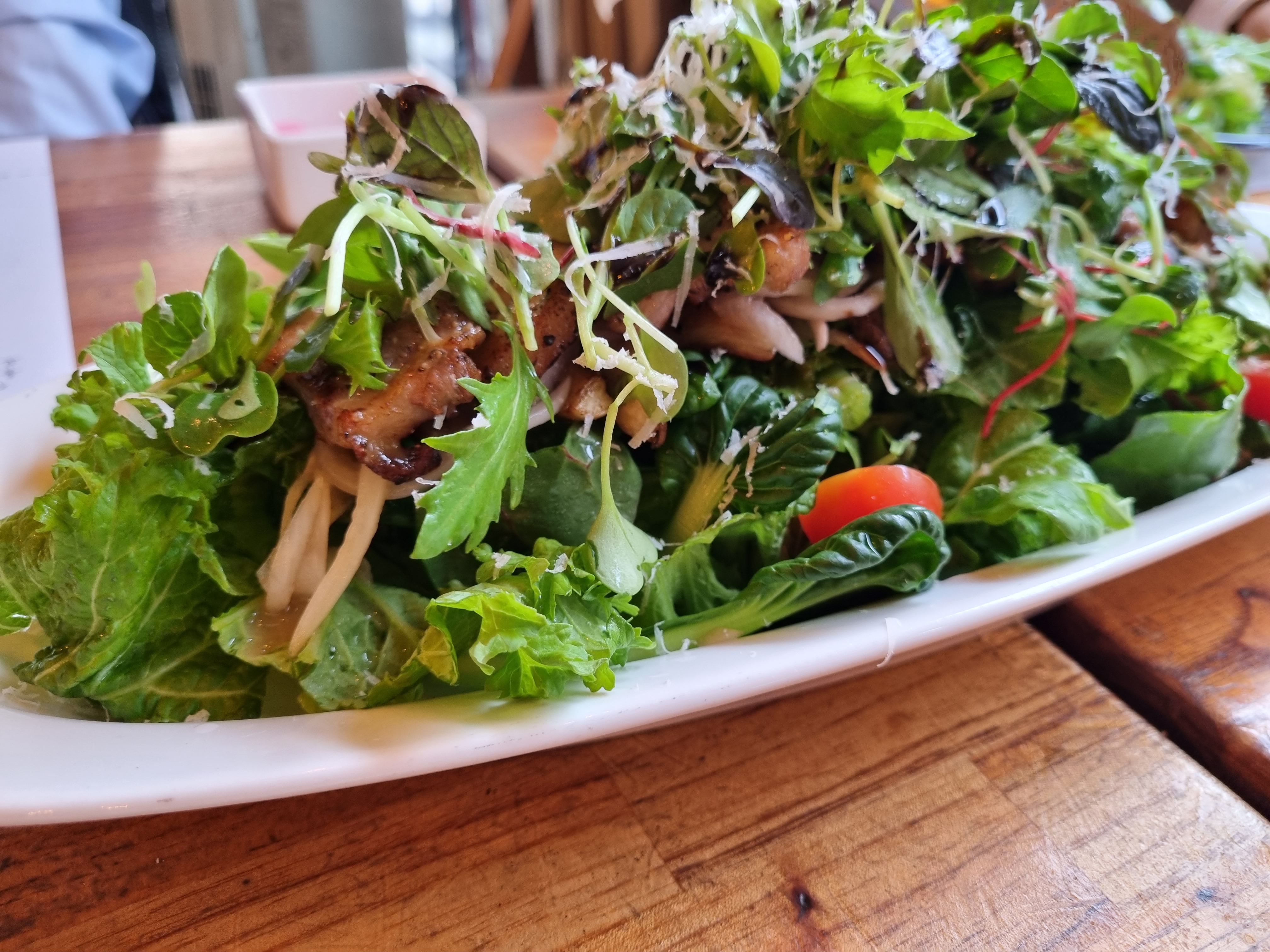 이탈리안 식당이지만 퓨전 메뉴들도 여럿 있습니다. 삼겹살스테이크샐러드는 그 대표격인 메뉴입니다. 잘 구워진 삼겹살에 샐러드와 된장 베이스의 소스가 가미된 것이 특징입니다.