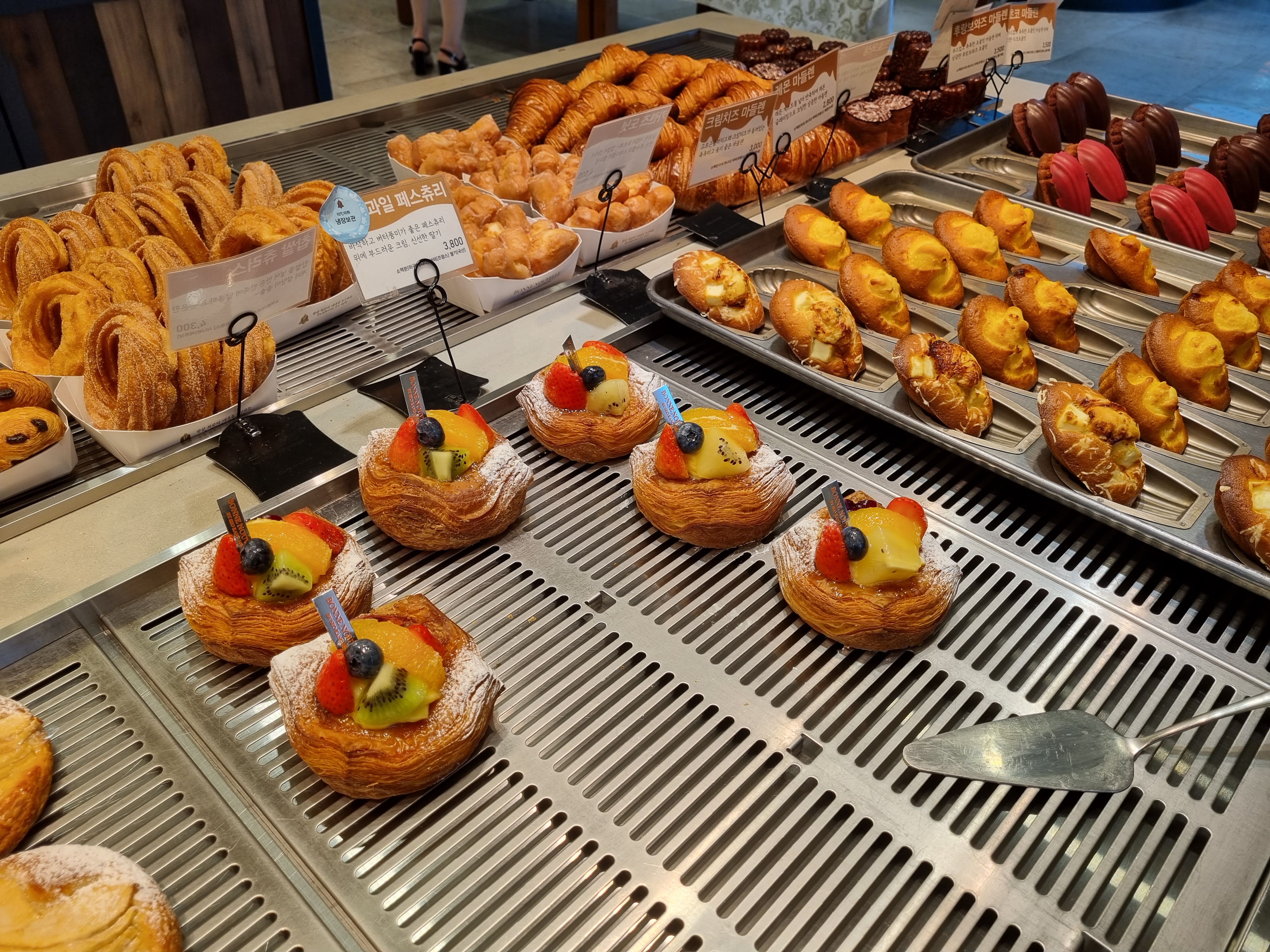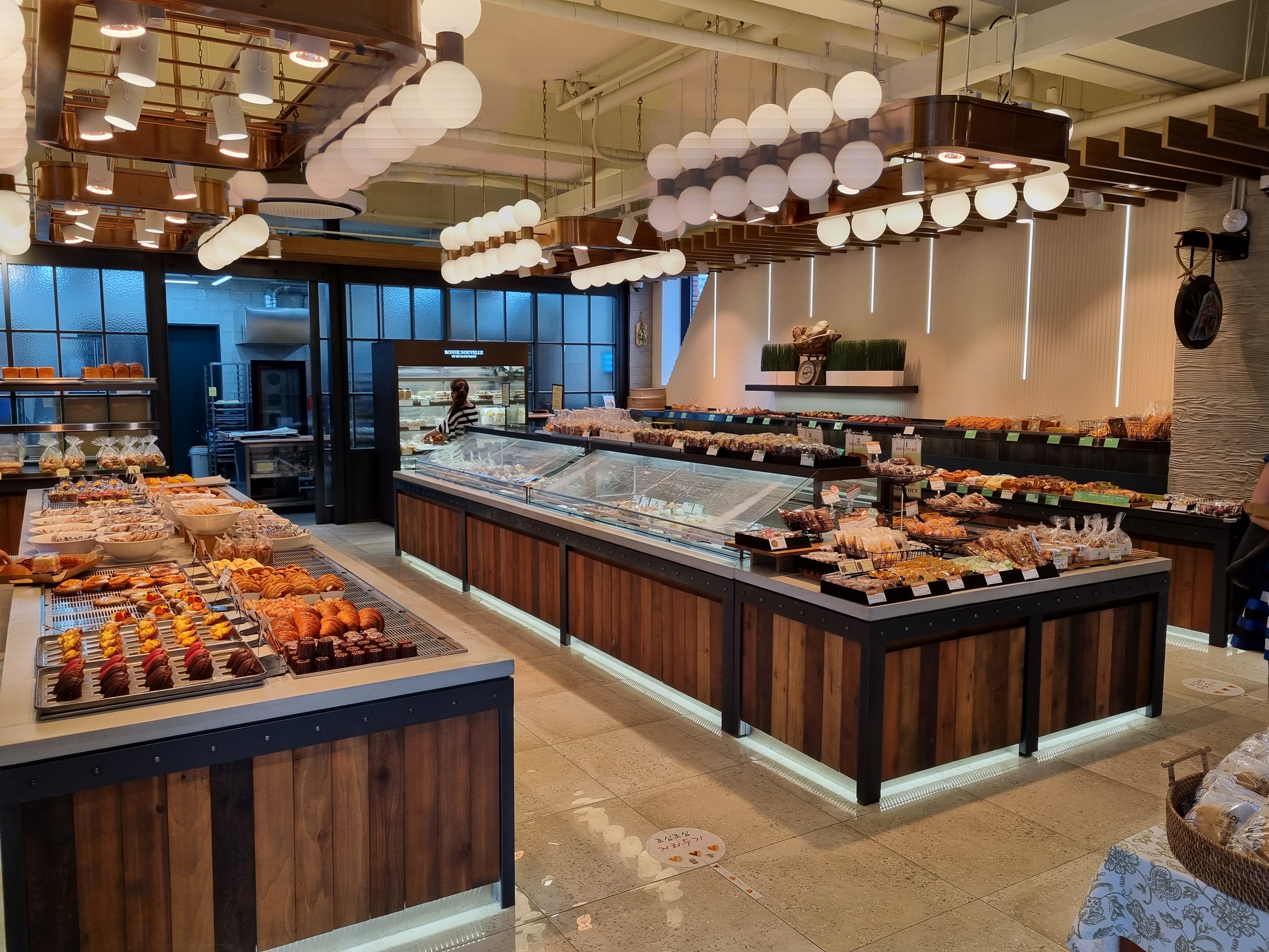 1층은 베이커리로 구성되어 있다. 다양한 빵과 케익류가 모두 구비되어 있다.