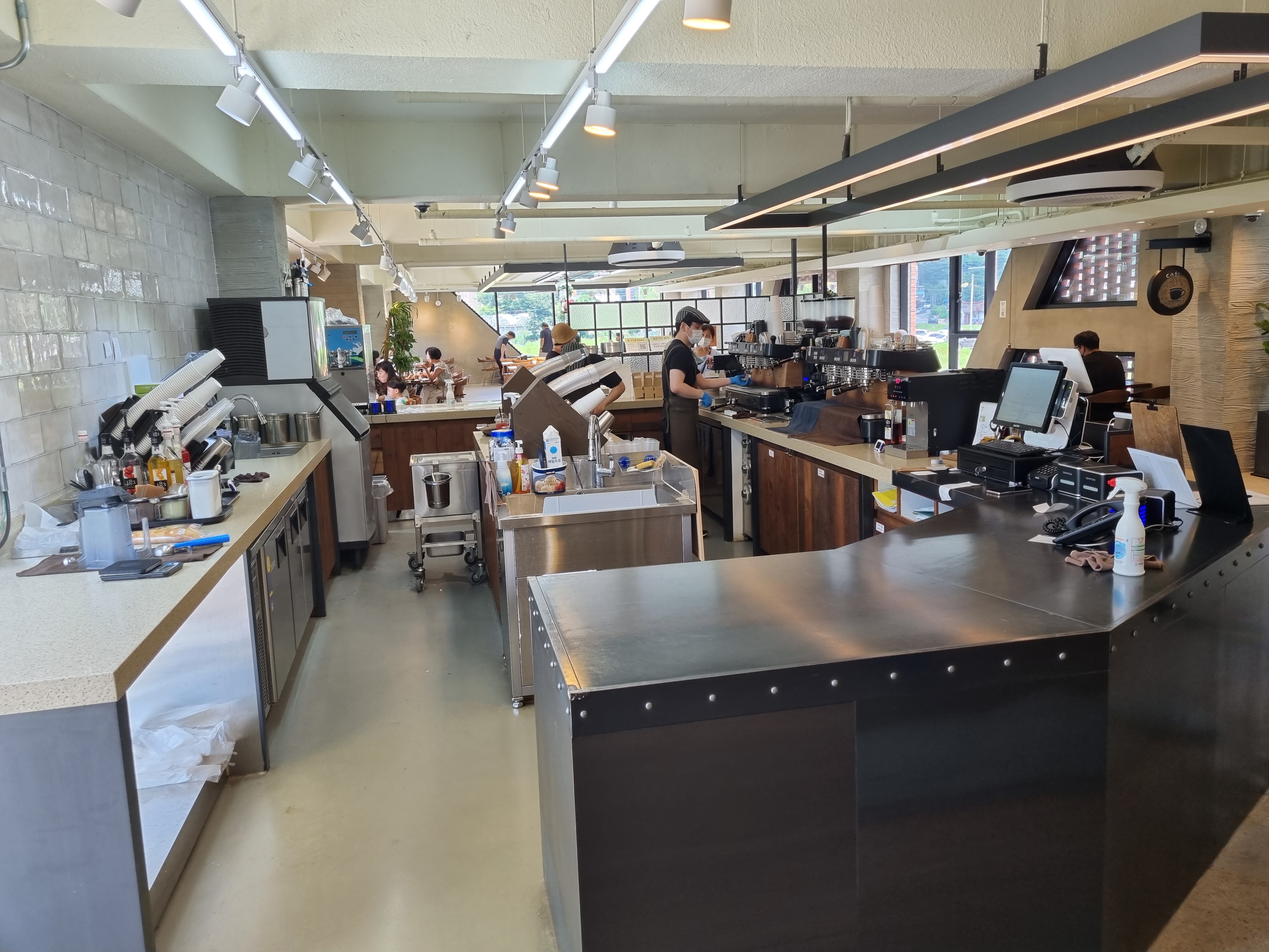2층은 매우 넓고 쾌적한 분위기가 느껴진다. 좌석이 많고 주변 전망이 막힌 부분이 없이 뚫려있어서 편안함을 준다. 인테리어에도 굉장히 신경을 쓴 것이 느껴진다. 가장 압권이었던 부분은 가운데 채광창이다.