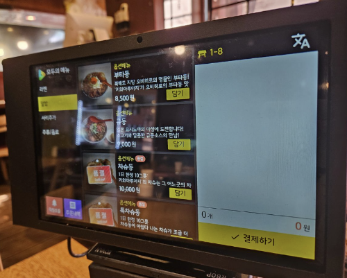 수원페이 가능합니다. 테이블마다 키오스크가 있어서 자리에서 바로 결제가 가능합니다. 더치페이 기능이 있어서 여러명이 가도 메뉴별로 결제하면 되서 편리합니다.